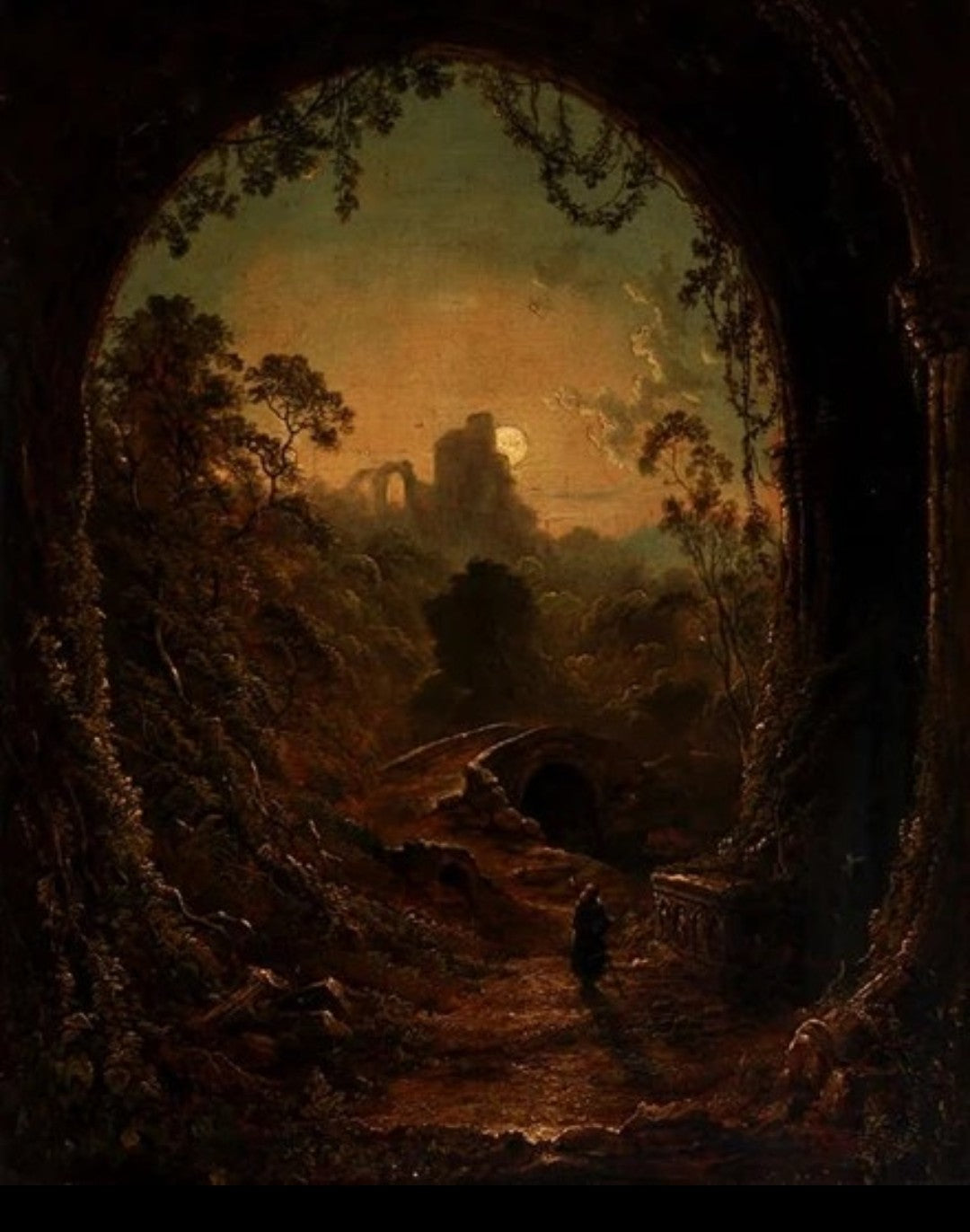 Artwork: “Moonlight Ruins” by Henry Pether, circa mid-19th century (England).